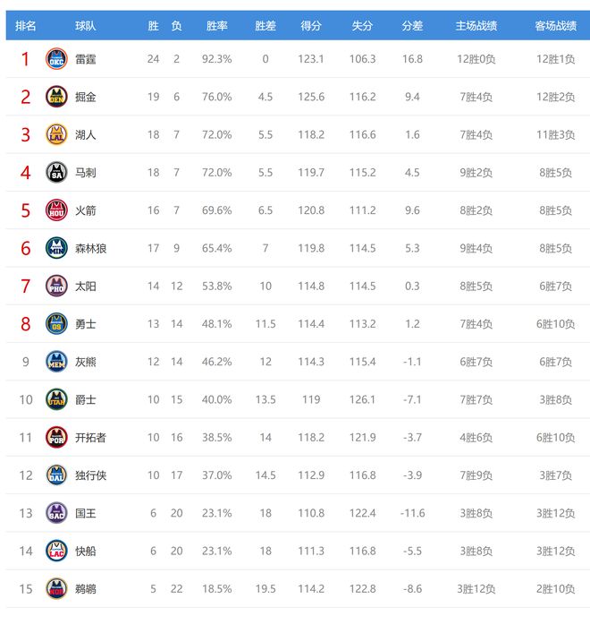 北京時(shí)間2025年12月16日,今日NBA有5場(chǎng)比賽,火箭、掘金、快船、獨(dú)行俠、灰熊、爵士參與其中,賽后西部排名發(fā)生了變化。
