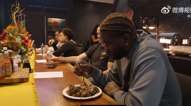 八村塁一邊吃著雞翅一邊興奮地喊道:“這是我吃過(guò)最好吃的炸雞!”