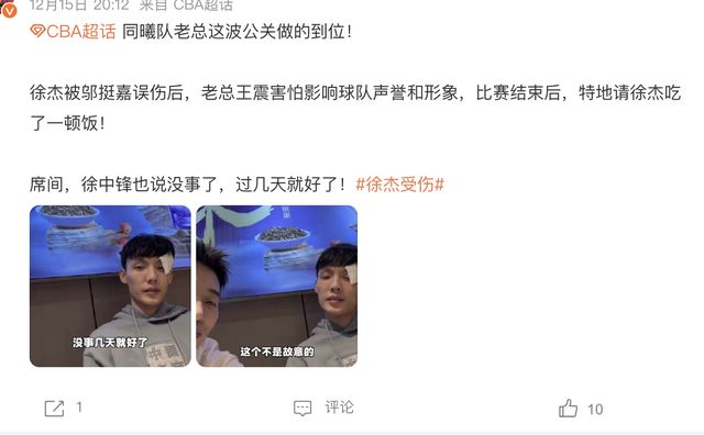 被鄔挺嘉重傷后首發(fā)聲,徐杰回應(yīng)大格局,同曦隊老總請吃飯賠罪