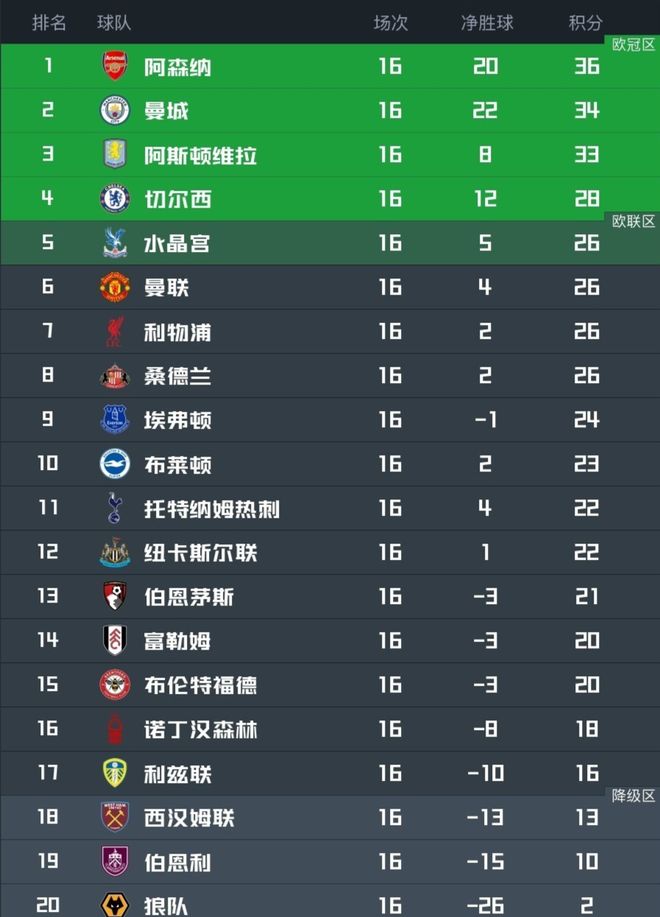 而水晶宮輸球后,積分為28分的切爾西,憑借本輪2-0擊敗埃弗頓的勝利成功重返前4。水晶宮、曼聯(lián)、利物浦和桑德蘭四支球隊(duì)的積分都是26分,這使得他們只憑凈勝球的差距分列第5至第8位。目前的英超,無論是冠軍還是歐冠席位資格,都十分焦灼,堪稱“大亂斗”。